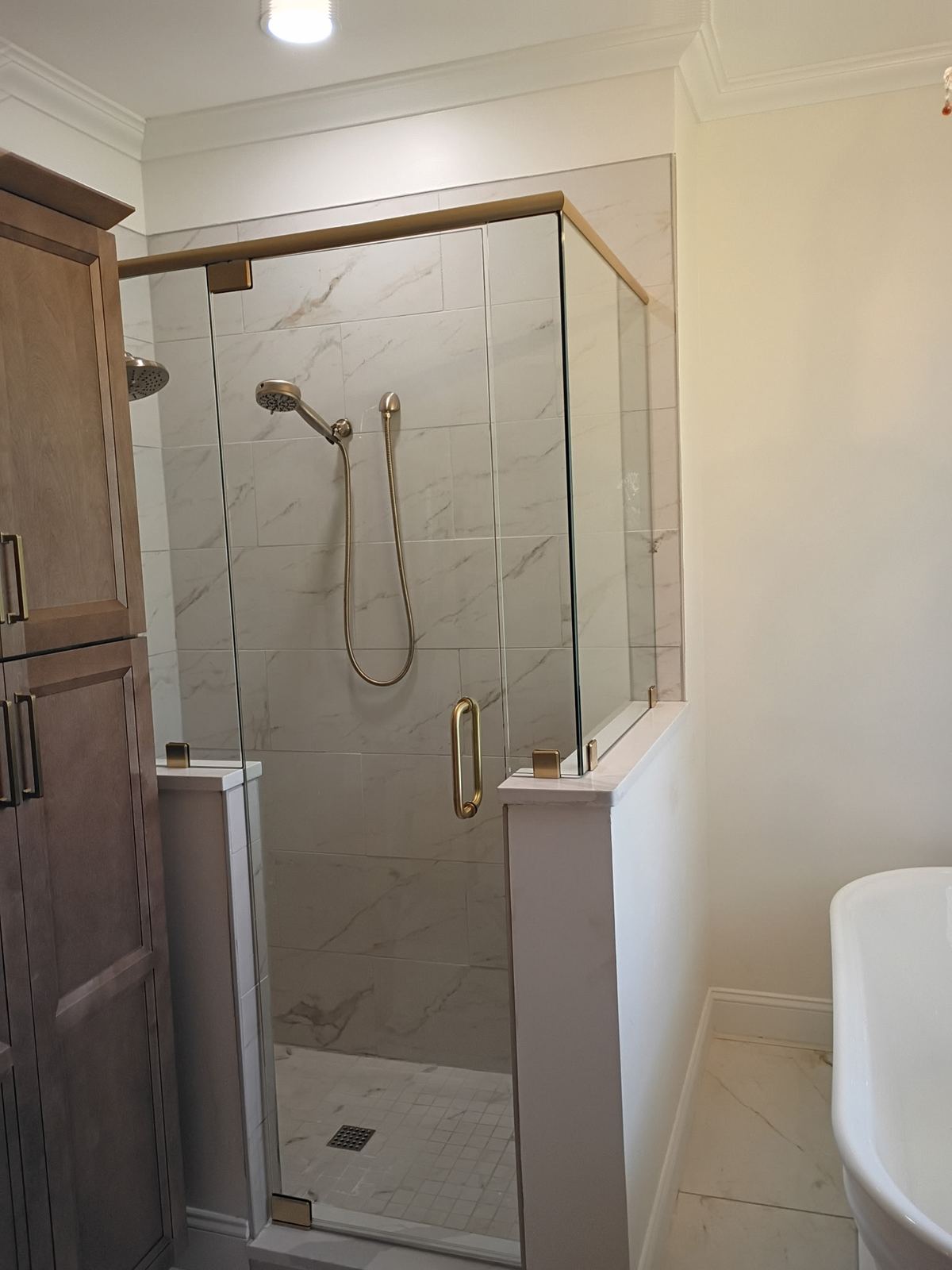 Frameless, semi-frameless, and framed shower enclosures. Available in chrome, matte black, brushed gold, and custom hardware finishes. Custom-measured and installed to fit your space perfectly.